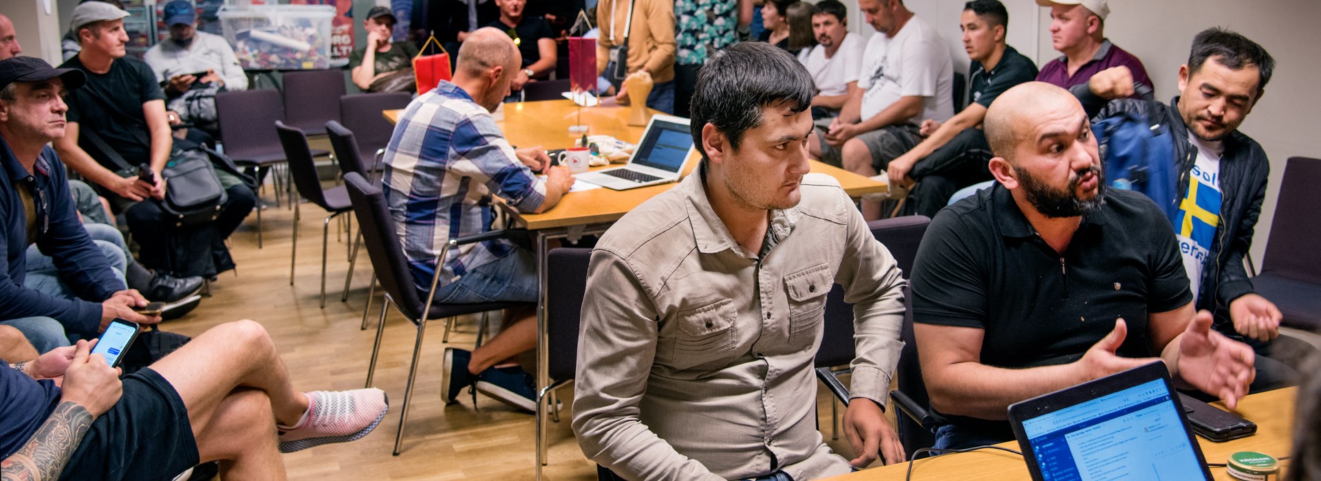 De flesta av arbetarna har jobbat för företag som drivs av män som också de är ryskspråkiga. Det gäller i kväll liksom alla andra kvällar – den här typen av möten hålls varannan vecka.