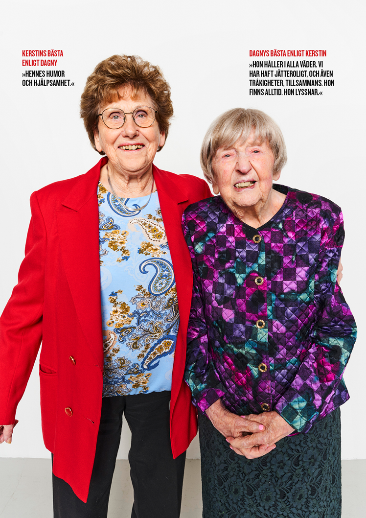 – Hon är så härlig och får mig att känna mig yngre, säger Dagny Carlsson, och skrattar högt, Kerstin Törnqvist stämmer in.
