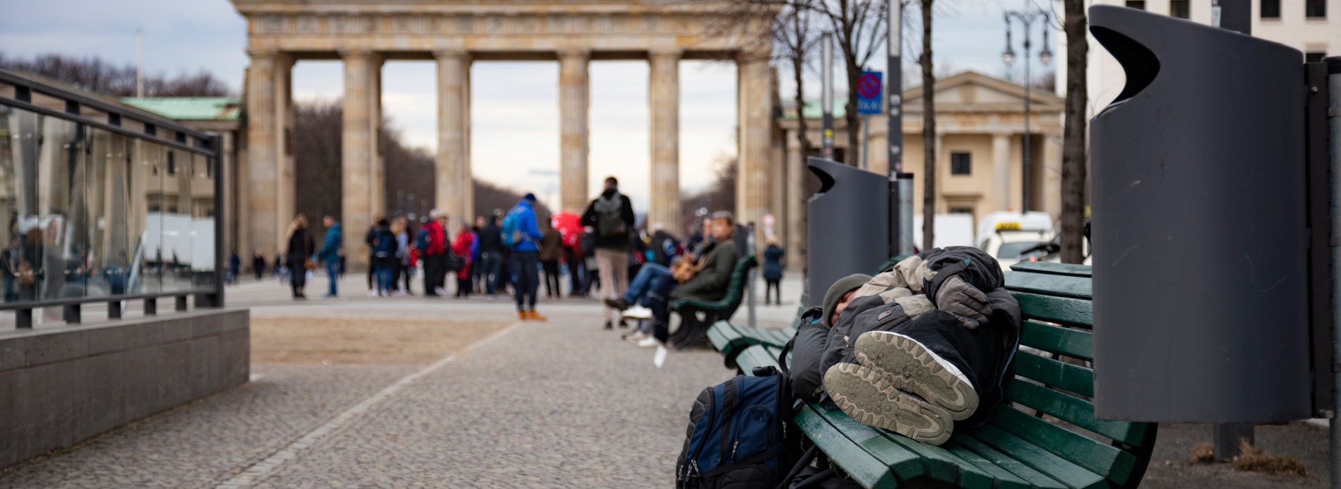 I början av 2020 gjordes en uppskattning av hur många som bor på gatan. Siffran landade då på runt 2 000 personer. Personer som tar skydd och skapar sig ett hem under den bastanta stålkonstruktionen som bär S-bahn. Vid Alexanderplatz står tälten tätt ihop och en man ligger och läser en bok i sin sovsäck direkt på asfalten, en annan har ställt upp blommor runt sin lilla plats på trottoaren, som en gräns mot förbipasserande och nyfikna turister.