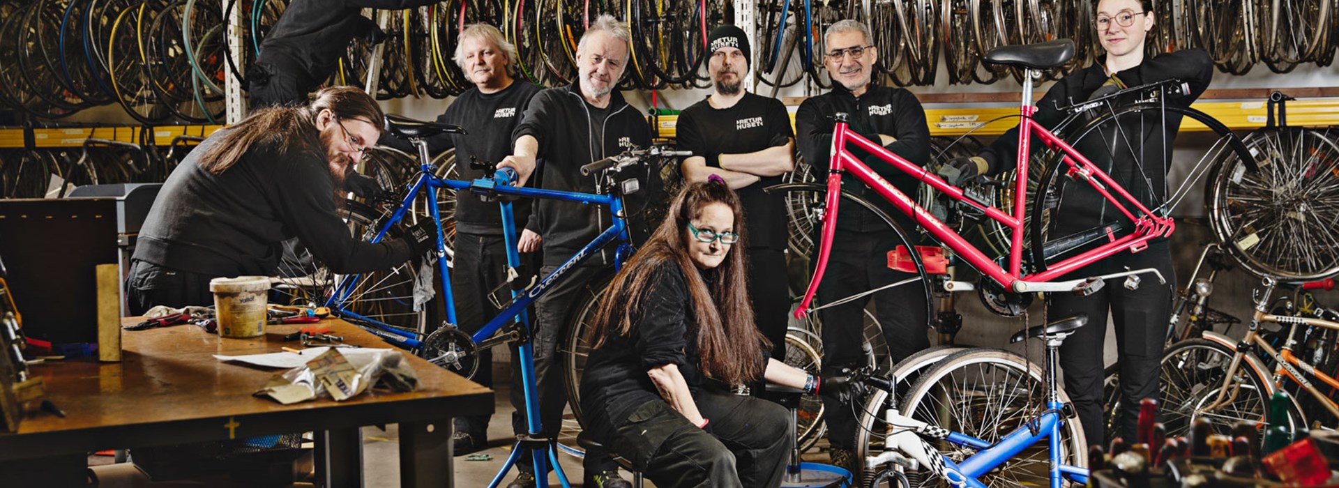 Många göteborgare har någon gång fått riva bort en etikett från sin cykel som indikerar att det är dags att flytta på den annars åker den till ”skroten”. I vissa fall åker den inte till skroten utan hit, till lagerlokalen i Alelyckan. Här rustas cyklarna upp enligt en checklista som bockas av och efter en sista slutkontroll säljs de under en helg i april. Folk vallfärdar hit för att fynda cyklar. Det verkar inte vara någon som riktigt vet hur många cyklar som finns i lokalen. I alla fall fler än 500. Reparerade av människor som arbetsrehabiliterar för att på sikt kunna återgå till arbetsmarknaden.