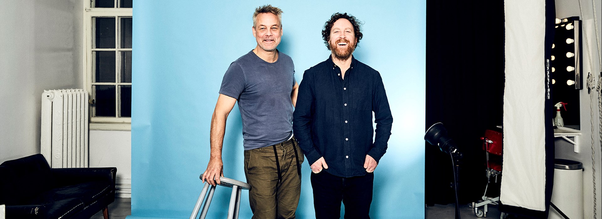 Klockan är kvart över tio när Henrik Schyffert kliver in i fotostudion i Stockholm. Han ber om ursäkt. Uje Brandelius var här prick klockan tio och sitter redan på stolen med händerna sammanflätade i knät. Henrik hänger av sig jackan och slår sig ner bredvid. Mellan dem står kaffe och sötsaker uppdukade på en pall. Nu börjar kafferepet.