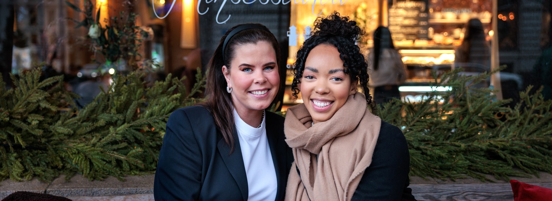 Det var väl du som föreslog att vi skulle ses här, säger Miranda Fredin till vännen Alexandra Jansson Hollstedt tvärs över fikabordet.