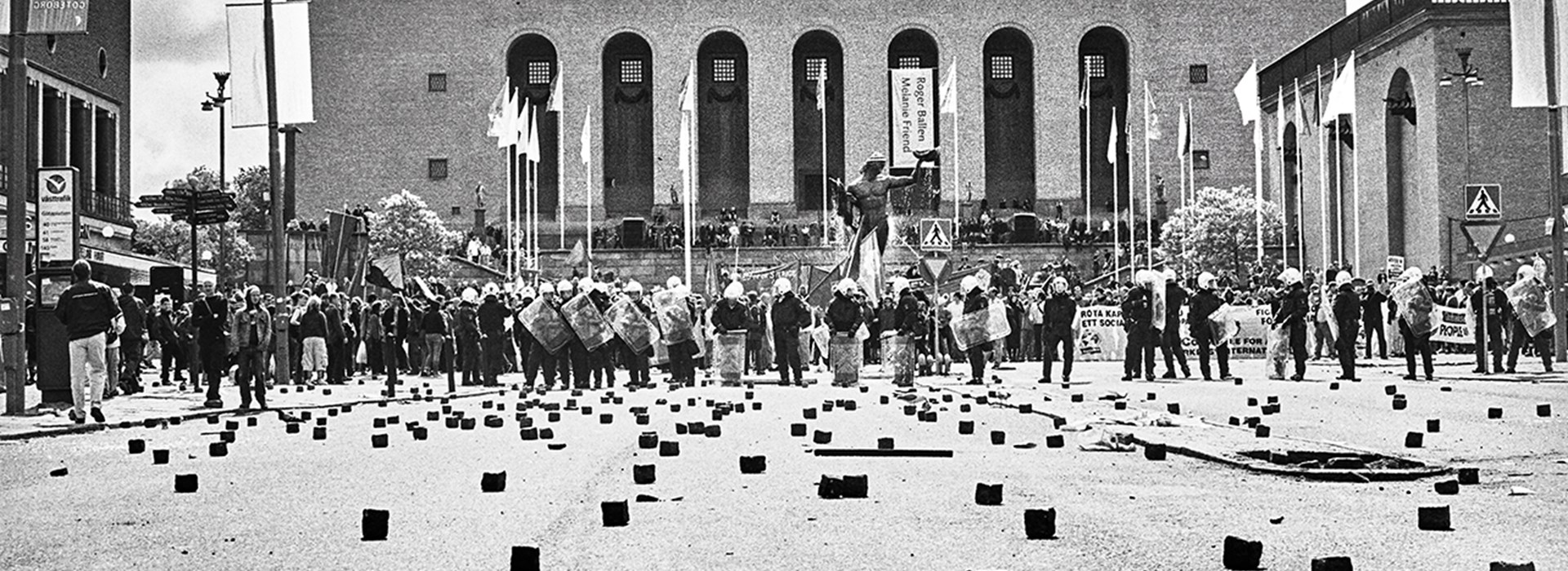 14 juni klockan 10.22, vi börjar där.Jag var en av 22 poliser som stod på Berzeliigatan när demonstrationen gick från Götaplatsen mot Svenska Mässan. Det såg fredligt och fint ut. Jag såg Mikael Wiehe passera förbi i tåget. Det var väldigt varmt. Jag kände svetten på ryggen och helikoptern surrade hela tiden ovanför huvudet. Jag tittade på klockan precis då, när vi fick order om att dela av demonstrationståget för att hindra de svartklädda maskerade att nå fram till avspärrningen runt mässan. Nu sätter det igång hann jag tänka, och på några sekunder blev luften grå av gatsten. Det var planerat. Ett angrepp mot Sverige, företrädesvis av tyska proffs på jävelskap. Och vi var inte förberedda, vare sig mentalt eller logistiskt.